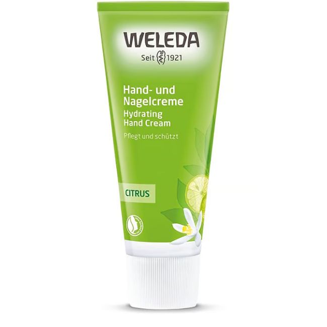 Die Weleda Citrus Hand- und Nagelcreme sorgt für samtweiche Haut und fördert das Wachstum schöner, gesunder Nägel. Ihr erfrischender Duft aus echtem ätherischem Citrusöl belebt die Sinne. Natürliches Carnauba- und Wollwachs bieten Schutz für brüchige Nägel. Feines Mandelöl pflegt die Nagelhaut und unterstützt das Wachstum kräftiger Nägel. Die sorgfältig ausgewählten Heilpflanzenauszüge machen selbst rissige Haut wieder geschmeidig.
