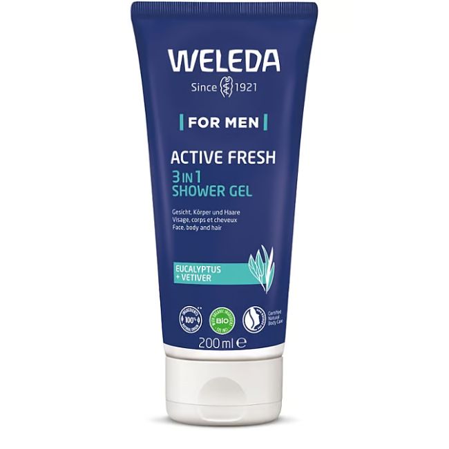 Starte frisch in den Tag! Dieses 3-in-1 Duschgel ist dein perfekter Morgenbegleiter. Der belebende Duft von ätherischem Eukalyptusöl sorgt für einen aktivierenden Start, während holzige Vetiver-Nuancen warme, maskuline Akzente setzen.