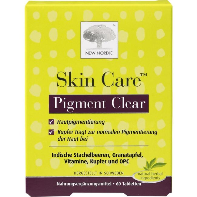 Skin Care™ Pigment Clear enthält indische Stachelbeeren sowie einen standardisierten Extrakt aus Granatapfel, natürlichem Astaxanthin und OPC aus Traubenkernextrakt. Die Tablette liefert Kupfer, das zur normalen Hautpigmentierung beiträgt, sowie Vitamin C, das die Kollagenbildung unterstützt und die Zellen vor oxidativem Stress schützt. Pigment Clear ist eine wertvolle Ergänzung Ihrer täglichen Schönheitspflege. Die Nährstoffe dringen über die Tablette in die tieferen Hautschichten ein, die von herkömmlichen Kosmetikcremes oder -lotionen nicht erreicht werden.