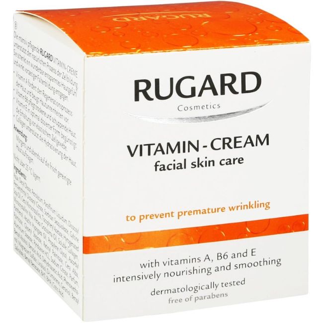 Die Rugard Vitamin Creme ist eine hochwertige Gesichtspflege, die Ihre Haut mit wertvollen Vitaminen und Nährstoffen versorgt. Die leichte, cremige Textur zieht schnell ein und hinterlässt ein geschmeidiges, gepflegtes Hautgefühl. Dank der ausgewogenen Formel mit Inhaltsstoffen wie Vitamin E und B5 wird die Haut optimal genährt und vor Umwelteinflüssen geschützt. Für ein frisches, ebenmäßiges Hautbild. PZN:10259058