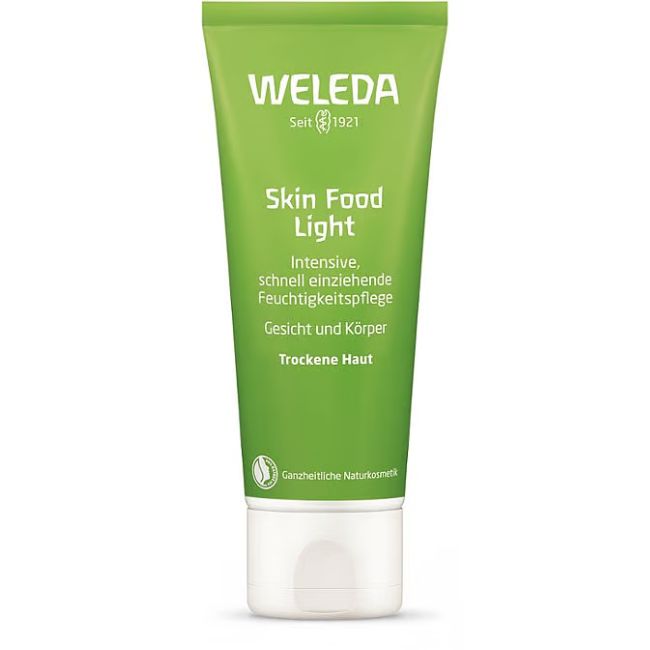 Schnell einziehende Feuchtigkeitspflege für Gesicht und Körper – ideal für unterwegs. Skin Food Light versorgt trockene Haut sofort mit intensiver Feuchtigkeit. Die samtige Creme beruhigt die Haut durch ihre reichhaltige Formel und wertvolle Pflanzenextrakte.