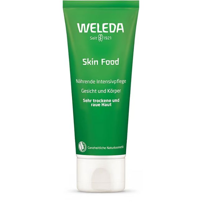 Weleda Skin Food ist eine natürliche Basispflege für die gesamte Familie, besonders bei trockener, rauer und spröder Haut. Diese bewährte Formel enthält Auszüge aus Stiefmütterchen, Kamille und Calendula, die traditionell beruhigend wirken. Seit über 90 Jahren ist dieser Klassiker von Weleda ein vertrauter Begleiter für glatte und geschmeidige Haut. Weleda Skin Food harmonisiert die Hautstruktur und ist ideal für besonders trockene Stellen wie Füße, Hände und Ellenbogen.