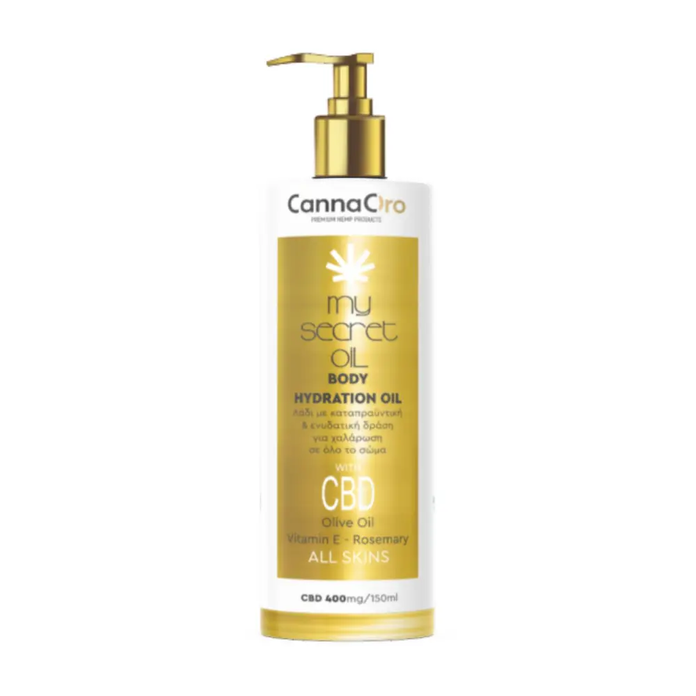 Das trockene Körperöl “My Secret Oil” von CannaOro Ihrer Haut intensive Feuchtigkeit und Regeneration verleiht. Das enthaltene CBD-Öl wirkt beruhigend und nährend, während die leichte, nicht-fettige Textur schnell einzieht, ohne einen öligen Film zu hinterlassen.