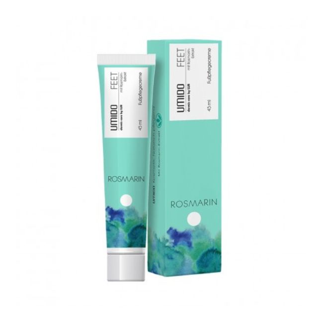 Die UMIDO Fußcreme pflegt, regeneriert und schützt Ihre Füße optimal mit dem wertvollen Rosmarin-Extrakt. Unsere Feuchtigkeitslotion sorgt für ein sanftes Hautgefühl, glättet die Haut und hinterlässt keinen Fettfilm. Mit nur einer Anwendung dieser Feuchtigkeitscreme schenken Sie Ihrer Haut und Ihren Füßen Schutz, Regeneration, Pflege und Geschmeidigkeit – ideal für die tägliche Fußpflege und eine angenehme Pediküre.