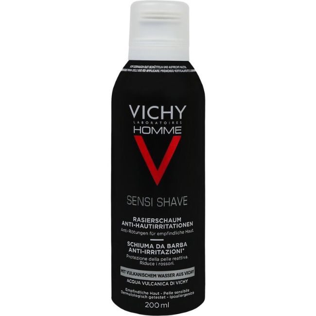 Der Vichy Homme Rasierschaum gegen Hautirritationen schützt und regeneriert die Haut. Er ist speziell für Männer mit empfindlicher oder Problemhaut geeignet, die zu Rötungen oder Irritationen nach der Rasur neigen, beispielsweise bei eingewachsenen Barthaaren oder Pickeln.