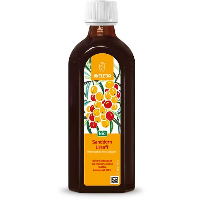 Besonders der hohe Gehalt an Vitamin C hat die kleinen, rotgoldenen Sanddornfrüchte bekannt gemacht. Vitamin C stärkt die Immunabwehr und schützt die Zellen. Zudem hilft es, Müdigkeit und Erschöpfung zu reduzieren, was besonders in der kalten, lichtarmen Jahreszeit und bei erhöhtem Vitamin C-Bedarf wichtig ist. Der Weleda Sanddorn Ursaft wird aus frischen, sonnengereiften Sanddornbeeren schonend zu einem schmackhaften Saft verarbeitet.
